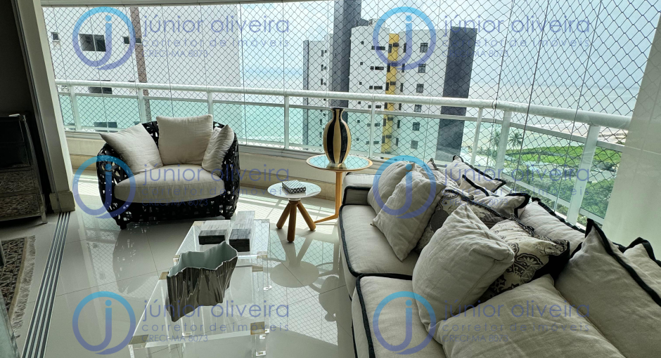 Características: apartamento mobiliado, super ventilado, com 245m², vista mar, fino acabamento e varanda gourmet. Possui 3 suítes (com possibilidade de reversão para 4 quartos), sala ampla, cozinha completa, área de serviço e 3 vagas de garagem.
